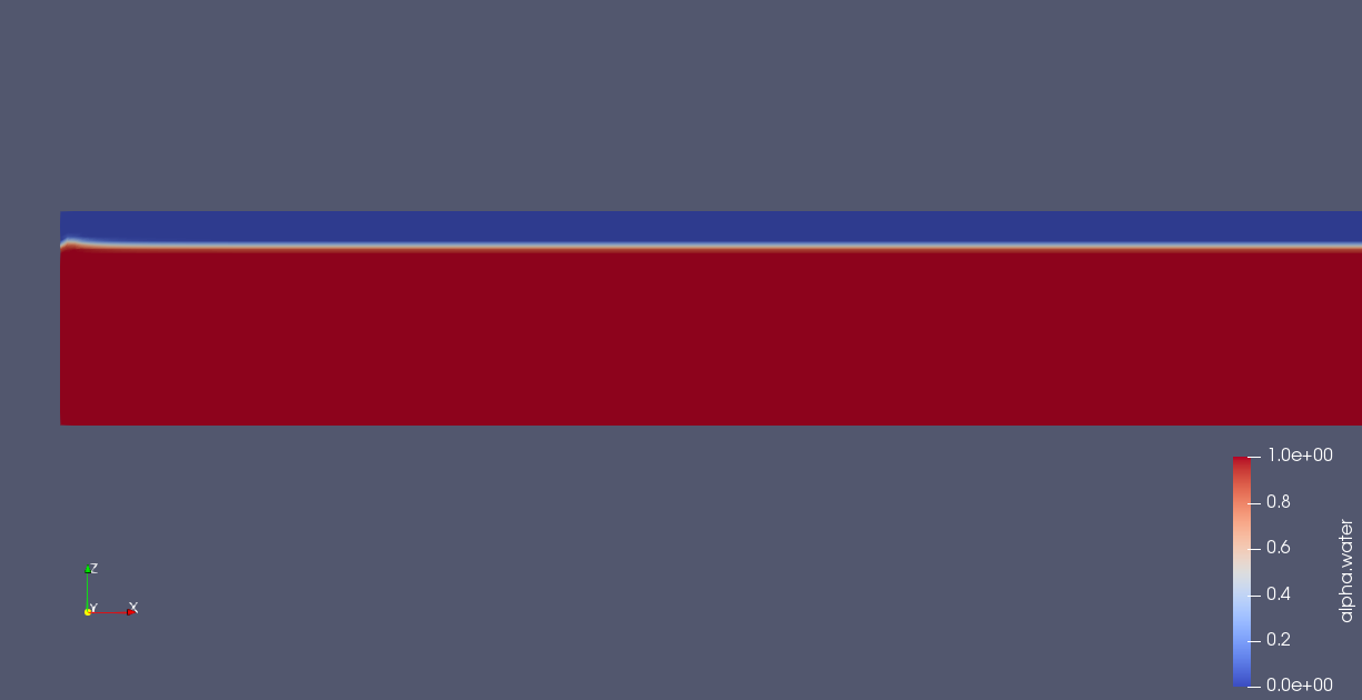 如果用waveFoam(本质上还是Interfoam,不过多了个速度入口的波浪边界条件)开始计算,结果发现速度会发生突变,导致波面很快变形消失。