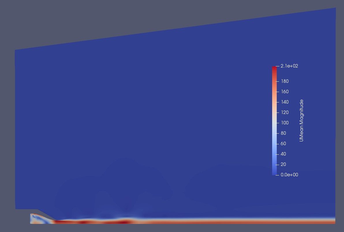 @cccrrryyy 谢谢您的回复。rhoSimpleFoam和实验结果对比还可以,我刚处理了一下这个粗糙网格的结果,图1是沿轴向的速度U分布对比,图2和图3是数值与试验的速度云图对比(图2是U的对比,图3是Umean的对比),可以看出Umean的云图更为光滑一些,图2速度U的云图能看到出口处速度不光滑有波动,现在我们怀疑是出口处壁面边界引起的非物理的泻涡造成的,但是图3Umean的出口处速度云图就很光滑: