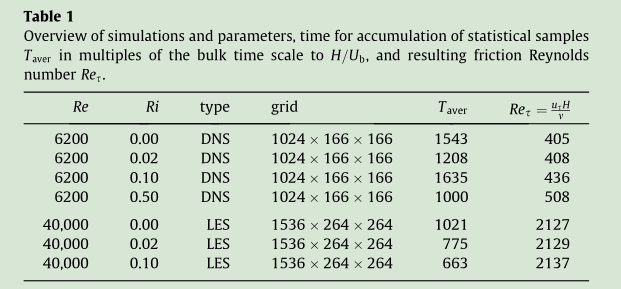 Ri的问题,同一个雷诺数下,改变浮力的大小会改变流动的情况,就产生了不同的摩擦雷诺数。它之所以同样的雷诺数有不同的friction Reynolds number应该就是这个原因。你要看他具体是怎么实现这个过程的。简单点的,可以入口速度不变,几何不变,流体不变,从而保证雷诺数不变,但改变重力加速度的大小,从而改变格拉晓夫数。或者什么别的方式。格拉晓夫数的话应该要涉及到温度了吧?可以通过修改边界温度的大小来实现。