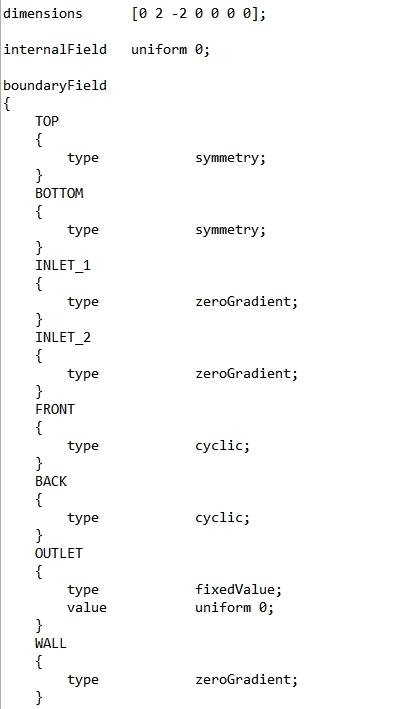 这是初始的设置,然后计算的结果是,来流的边界上就是初始设置的nut的值1e-5,到了流场中里面变得很小很小,不知道是哪里出了问题