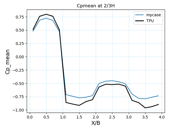 感谢各位师兄回复,空计算域风场已经调整过应该还算对得上,但是最终算的结果尤其是脉动风压对不太上(以及侧面的平均风压),如上上图整体偏小,算例近壁面y+平均值在1.2左右,库朗数最大值始终在1左右。现在考虑可能的原因是对流项离散格式和亚格子模型的选取问题?或者说可能是因为TPU除了Iu剖面的其他统计量与我自己的假设不同导致的结果差异?另外一个问题想请教各位师兄的是因为网格密和时间不长小所以每次调整参数比较慢,我看有的文章会采用较大的时间步长比如0.001,但不知道当取大时间步长以及壁面函数比如前面师兄的nutUSaldingWallFunction结果尤其是脉动风压结果还能否计算准确呢?