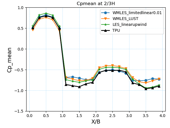 @HITSC30 您好,我想请问下您的这里的图示是否使用了Spalding壁面函数呢?我做了一个算例均值表现似乎还行但是脉动结果差的有点多,如下图。我没有使用壁面函数,但保证了近壁面y+约为1.2左右,亚格子模型选用的标准的SGS,对流项离散格式选取的linearupwind,据我的尝试似乎对流项格式会对结果影响较大?想问下您的对流项格式最终选取的是什么呢?以及想请教下哪些设置可能会对风压结果尤其是脉动风压结果影响较大呢?