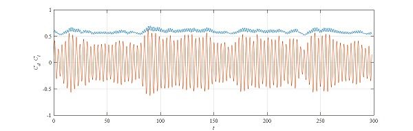 算了300个无量纲时间步,Cd-0.6,Clrms-0.31.
