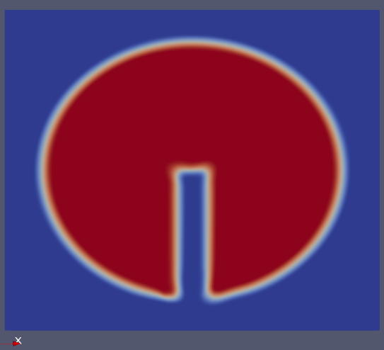 如果我将代码更改为code_text ```{ const dimensionedScalar DeltaT = runTime.deltaT(); dimensionedScalar r = 1.5; volScalarField alpha10("alpha10", 2*alpha1.oldTime()-alpha1.oldTime().oldTime()); volScalarField alpha11("alpha11", 2*alpha1.oldTime()-0.5*alpha1.oldTime().oldTime()); volVectorField U10("U10",2*U.oldTime()-U.oldTime().oldTime()); phi10 = fvc::interpolate(U10)& mesh.Sf(); H = twoPhaseProperties.calcuH(alpha10); H.correctBoundaryConditions(); dimensionedScalar beta_ = sqrt(1.5/(thicknesss_*thicknesss_*Mu_*DeltaT)); fvScalarMatrix midEqn ( fvm::laplacian(mid) -fvm::Sp((c-sqrt(c*c-1))*beta_,mid) ); solve ( midEqn == (-fvc::div(phi10,alpha10)+alpha11/DeltaT)/(thicknesss_*thicknesss_*Mu_) +fvc::laplacian(H/(thicknesss_*thicknesss_)-2*c*beta_*alpha10) ); mid.correctBoundaryConditions(); fvScalarMatrix alpha1Eqn ( fvm::laplacian(alpha1) -fvm::Sp((c+sqrt(c*c-1))*beta_,alpha1) ); solve ( alpha1Eqn ==mid ); alpha1.correctBoundaryConditions(); alpha1 = max(min(alpha1,1.0),-1.0); alpha1.correctBoundaryConditions(); }这是这段代码的计算结果