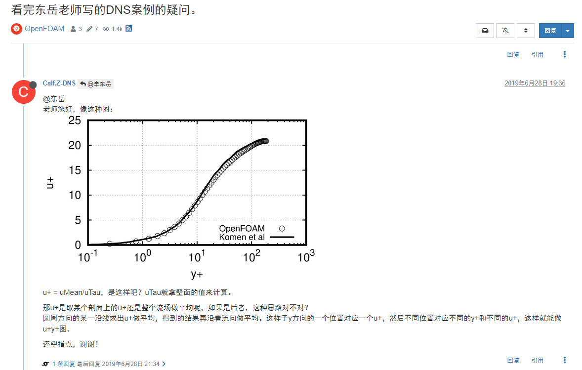 关于icoFOAM的qDNS案例的问题求助请问下东岳老师还有各位大佬,icoFOAM的qDNS案例是可以直接运行的吗,想要作\(u^+\)-\(y^+\)图,参考Calf.Z-DNS的回答