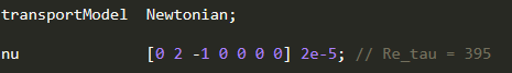 1.case给的是\(Re_\tau\)=180,所给文献的数据也是\(Re_\tau\)=180,但是transportProperties文件给的是运动粘度nu的值为2e-5,注释却是\(Re_\tau\)=395,按照2e-5计算后\(Re_\tau=\frac{0.1335*0.001332}{0.00002}\)=8.8911,不知道雷诺数以哪一个为准;